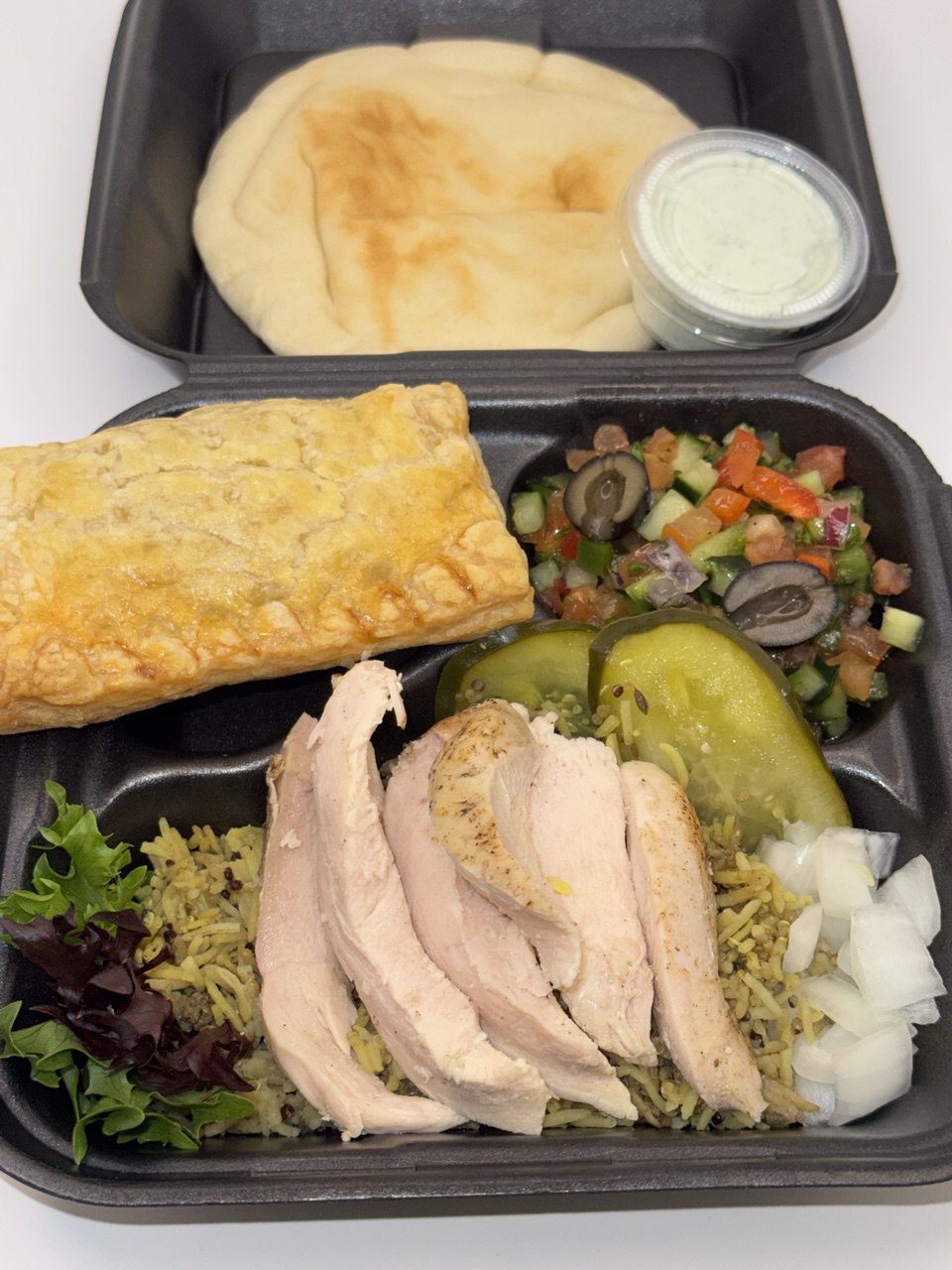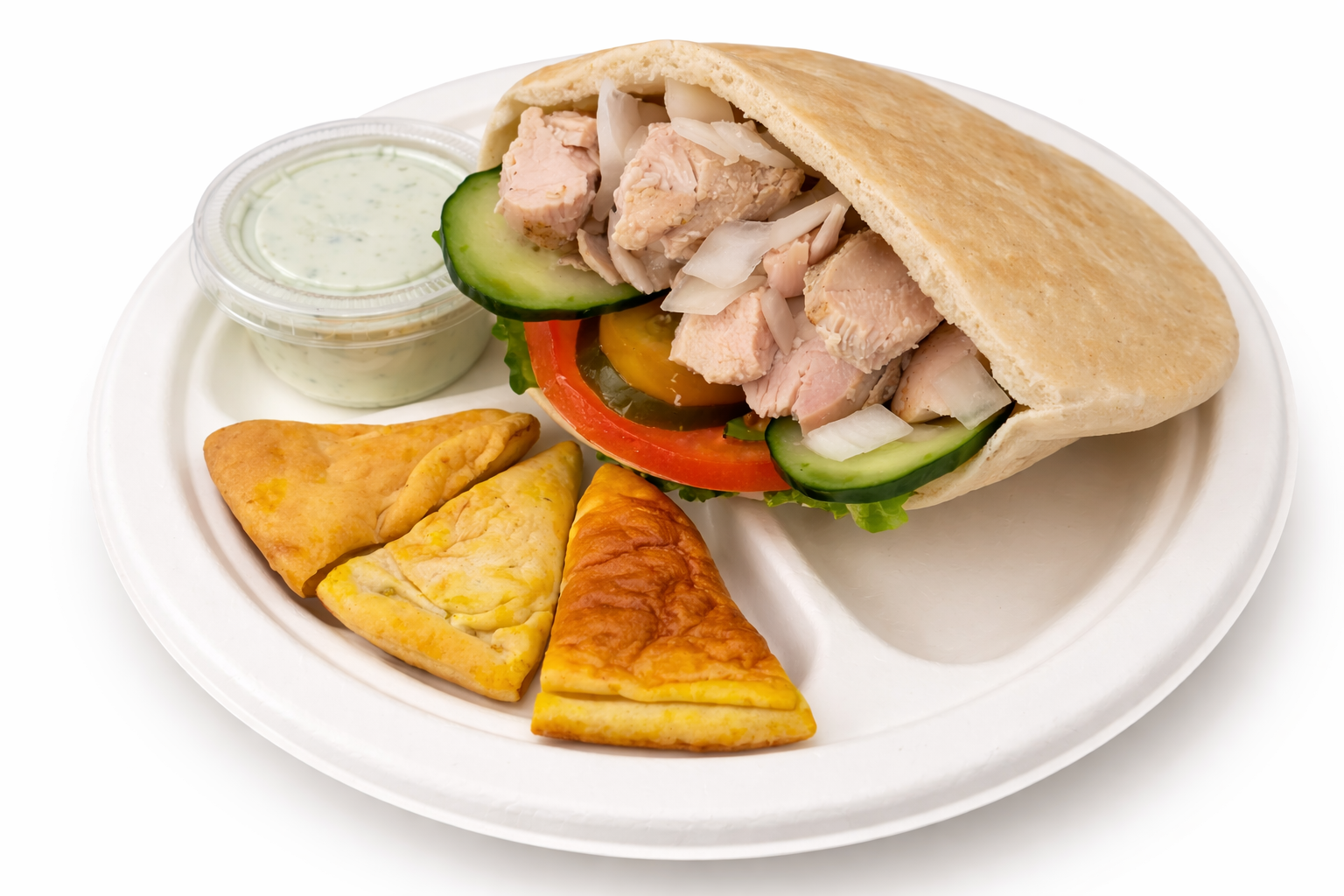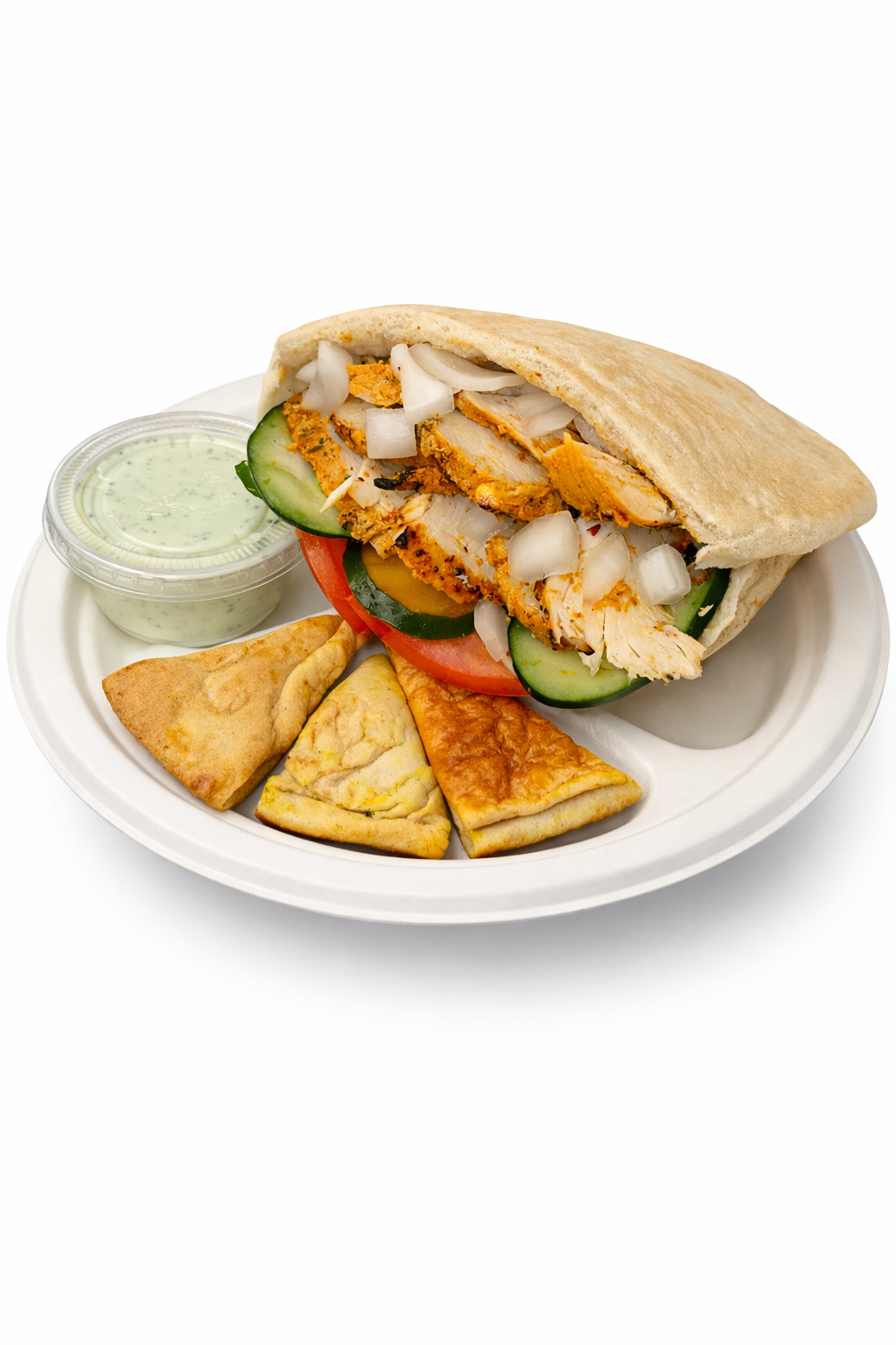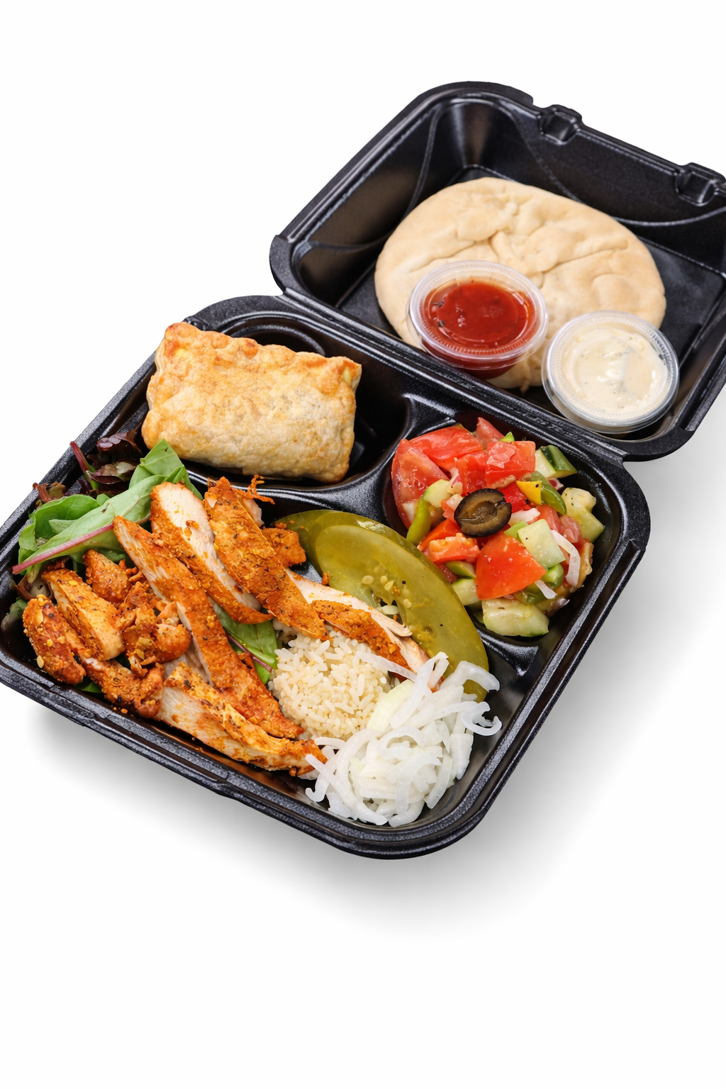 Our pita, sauces, and plates are prepared fresh every morning — no preservatives.